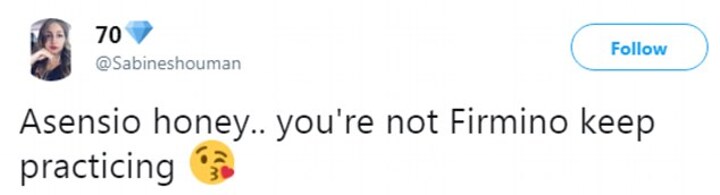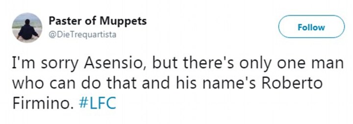 'I'm sorry Asensio, but there's only one man who can do that and his name's Roberto Firmino,' one supporter wrote.