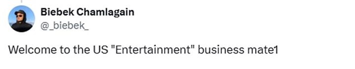 'Welcome to the US "entertainment" business,' another added.