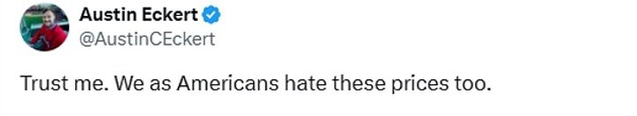 'Trust me, we as Americans hate these prices too,' one fan wrote in response.