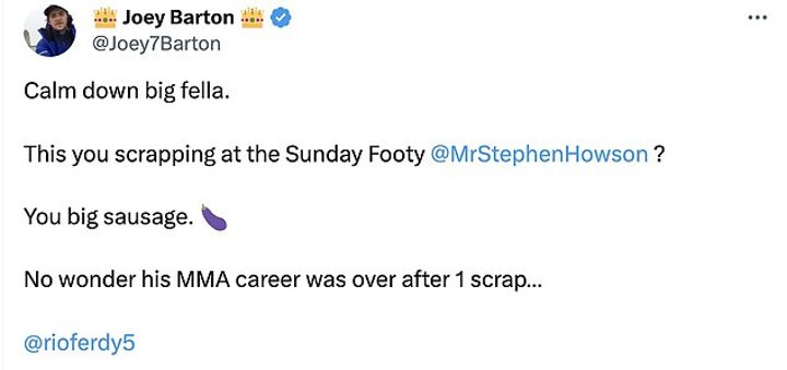 After further posts from Barton, Howson took to X, formerly known as Twitter, to say: 'I’ve been to war, 3 times, played academy level Rugby League, fought MMA but couldn’t play Xi a side football?