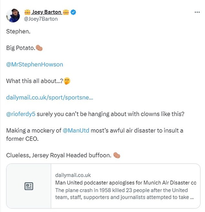 Accompanying the post, was a link to Mail Sport's report on how the podcaster apologised for on-air rant claiming Ed Woodward's Old Trafford reign 'was worse' for the club than the Munich air crash.