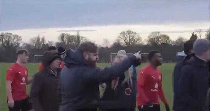He stepped onto the park pitch to shout at the referee, before a brawl broke out when he was approached by one of the home players.