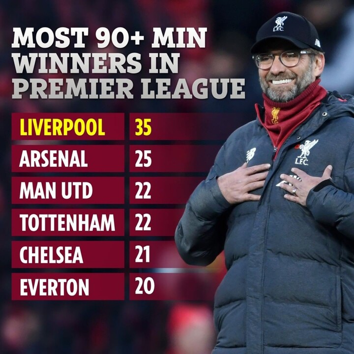 Liverpool has scored most winning goals in stoppage time in Premier League under Klopp. 35 of their winning goals were scored in 90+ minutes.