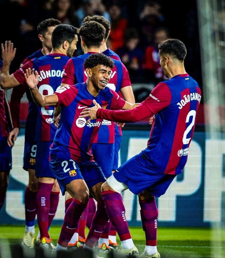 Barcelona XI: Lewandowski, Gundogan, Ter Stegen, I. Martinez, Cancelo, Christensen, De Jong, Kounde, Pedri, Lamine Yamal, Pau Cubarsí