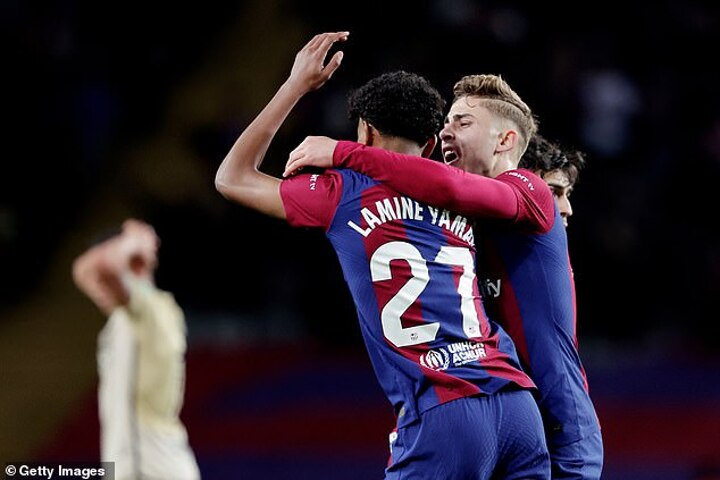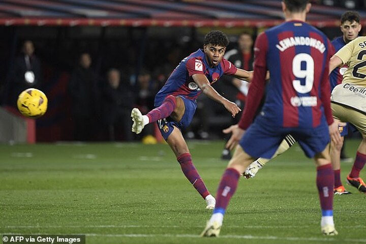 Barcelona were back level again when Yamal got his team’s third and the game’s sixth goal. Unlike the first goal he scored there was no clever build-up. He just lashed into bottom left corner of Augusto Batalla’s goal from the edge of the area.