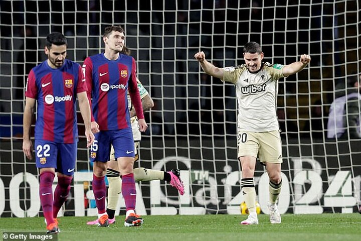The lead only lasted three minutes because Cancelo crossed from the left to Gundogan and he slipped Lewandowski through to fire past Augusto Batalla and put Barcelona back level.