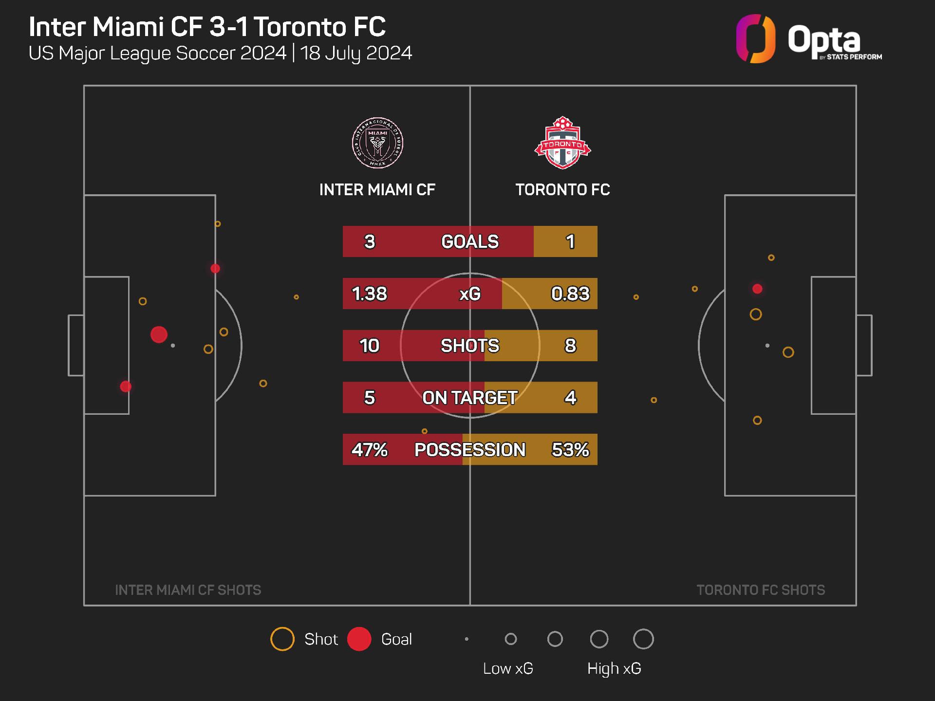 Since the beginning of the 2021 season, Inter Miami have recorded eight wins in nine meetings with Toronto in all competitions (one defeat).