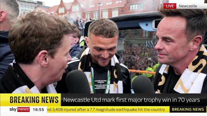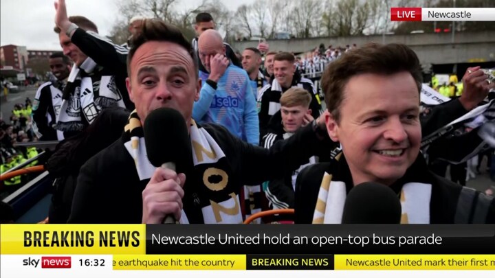 Geordie icons Ant and Dec led the celebrations as thousands of Toon fans lined the streets for a parade following last week's Carabao Cup success.