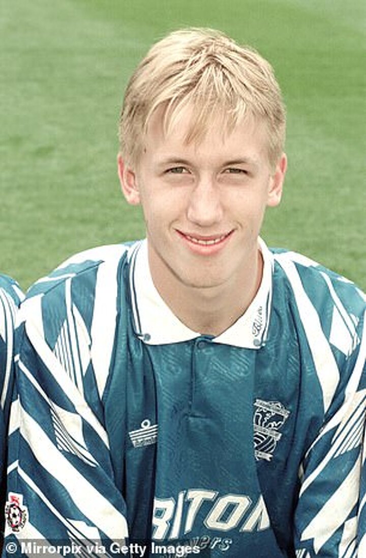 The English manager looks almost unrecognisable compared to how he appeared in a 1993 photograph from his teenage years at Birmingham City.