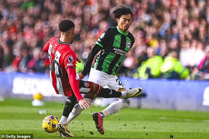 The defender lunged into a tackle on Brighton's Kaoru Mitoma in the opening exchanges at Bramall Lane, in a collision that sparked outrage from the away side.