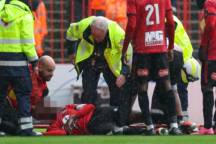 The 26-year-old remained on the ground for 10 minutes while receiving treatment from medical staff.