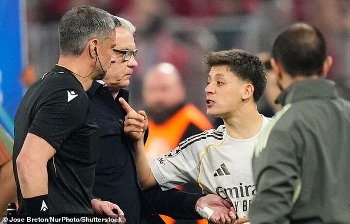 Arda Guler, who scored two brilliant goals on the night, was particularly incensed and had to be restrained by staff as he yelled in the Slovenian official's face.
