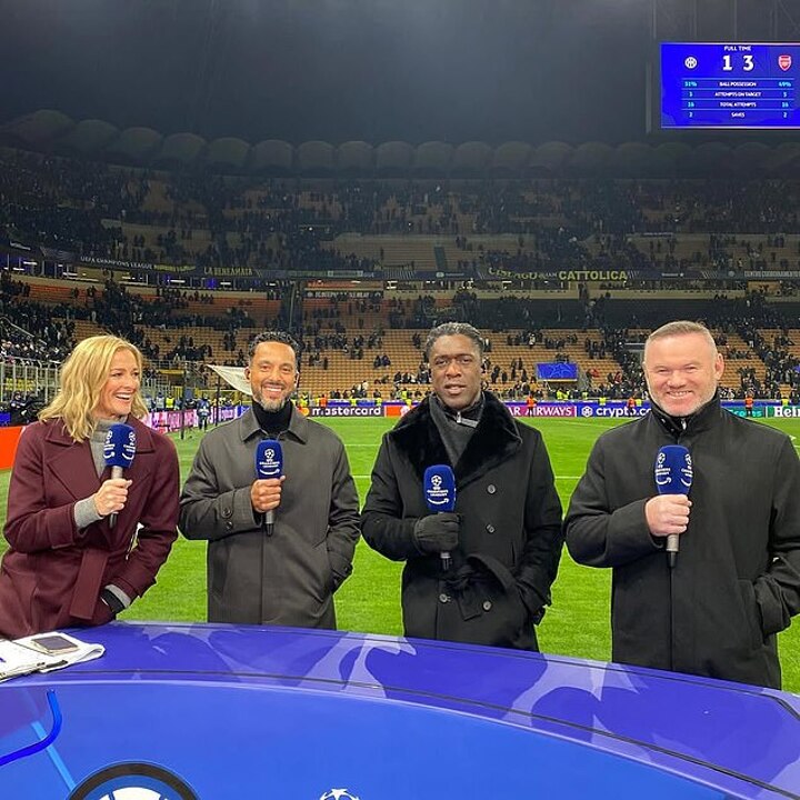 She anchored the streaming service's coverage of Arsenal's 3-1 victory over Inter Milan, with Wayne Rooney, Theo Walcott and Clarence Seedorf supporting as pundits.