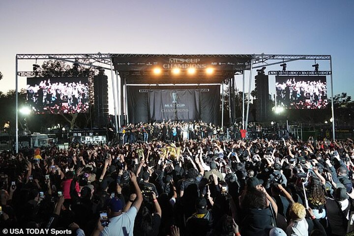 LAFC announced they would be holding a public fan celebration on Sunday afternoon. It took place on Christmas Tree Lane, right outside the stadium.