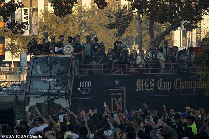 The Black and Gold players were seen parading around on an open air bus after winning first MLS championship.