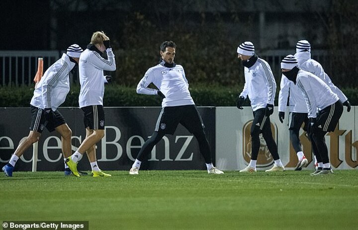 And on Sunday, the likes of Marco Reus, Mats Hummels, Leroy Sane and Manuel Neuer were very hard at work on the eve of the European clash against their rivals, who can earn a spot in the Nations League semi-finals with victory.