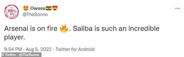 'Arsenal is on fire', one fan noted, before hailing the work of French centre-back William Saliba. 'Saliba is such an incredible player', they stated, after keeping a Premier League clean sheet for the first time since March.