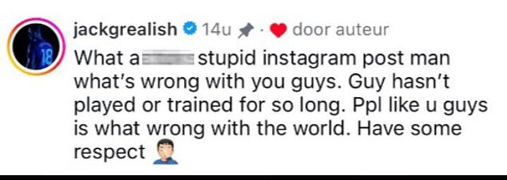 Grealish, 30, responded: 'What a f*****g stupid Instagram post man what's wrong with you guys. Guy hasn't played or trained for so long. Ppl like u guys is what wrong with the world. Have some respect.'