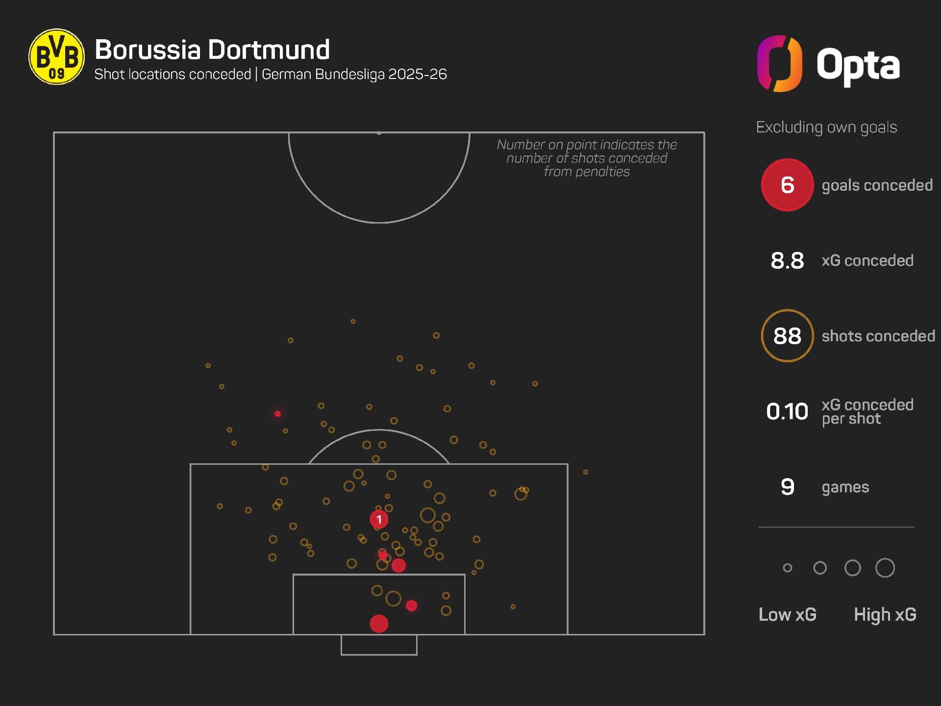 Dortmund have already kept six clean sheets in nine Bundesliga matches this season, their most at this stage of any campaign and the joint-most in Europe's top five leagues, alongside Arsenal.