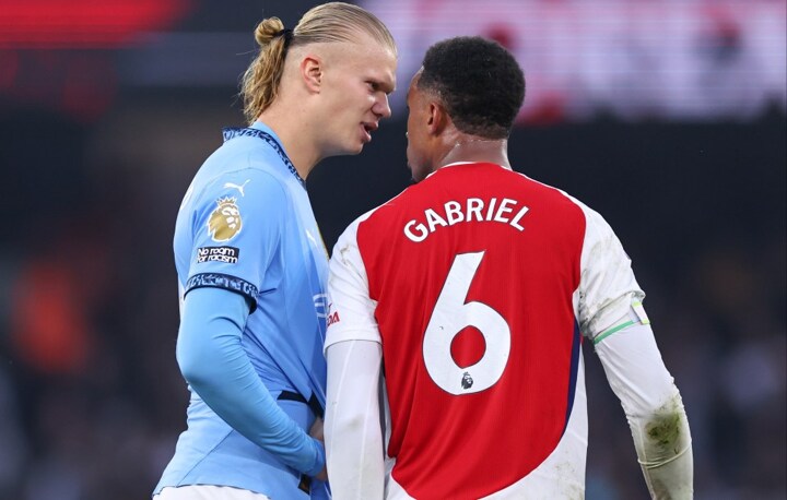 The Norwegian striker, 24, who opened the scoring in the match with his 100th goal for Man City, was not punished for launching the ball at Gabriel.
