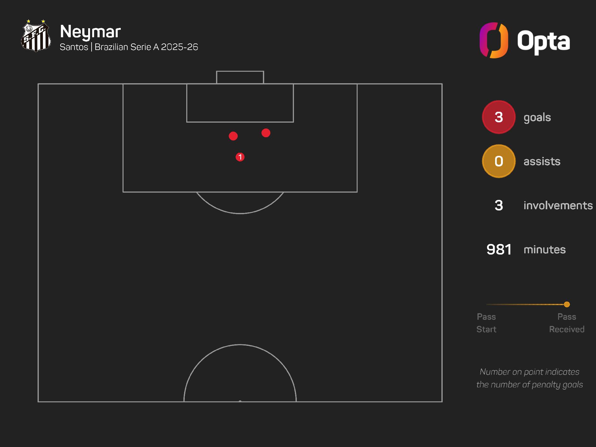 Neymar has netted three times in the league for Santos this season, in 13 appearances, with his minutes limited by injuries.
