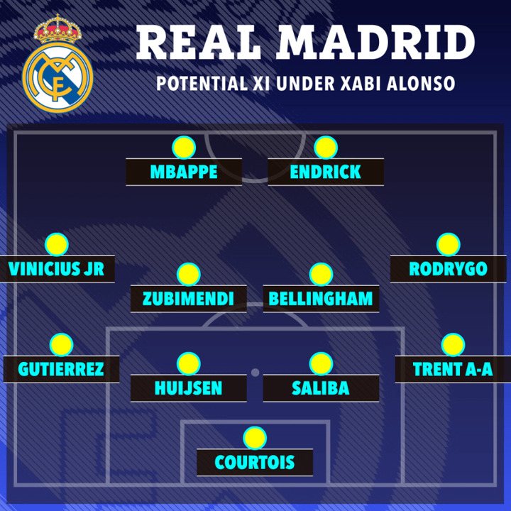 And that would see a similar back five supported by a midfield pivot of Zubimendi and fellow holder Eduardo Camavinga.