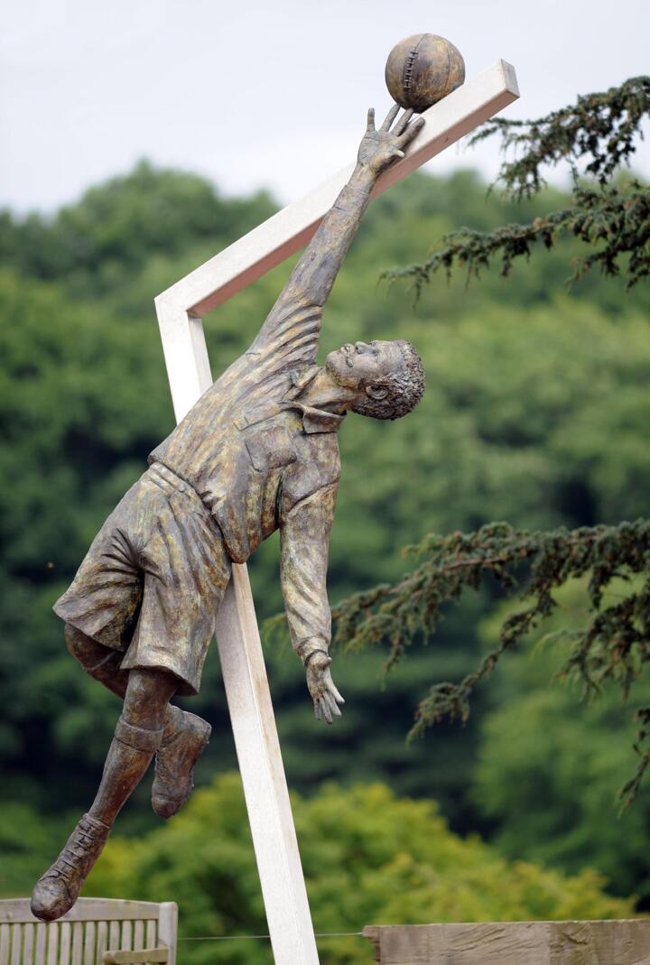 The 16ft colossus hewn in bronze at St George's Park, Staffs, shows the leaping figure of Arthur Wharton and is designed to inspire success against the odds.