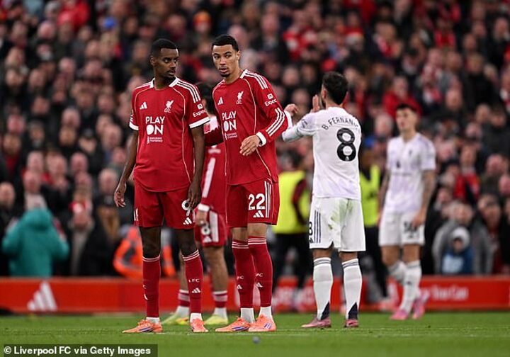 Later, in the second half, Van Dijk wobbled yet again, somehow managing to divert a routine cross from his knee up into the face of left-back Milos Kerkez. It was car crash defending once again yet Van Dijk immediately looked to shift responsibility, yelling at Kerkez for seemingly not letting him know that he was there.