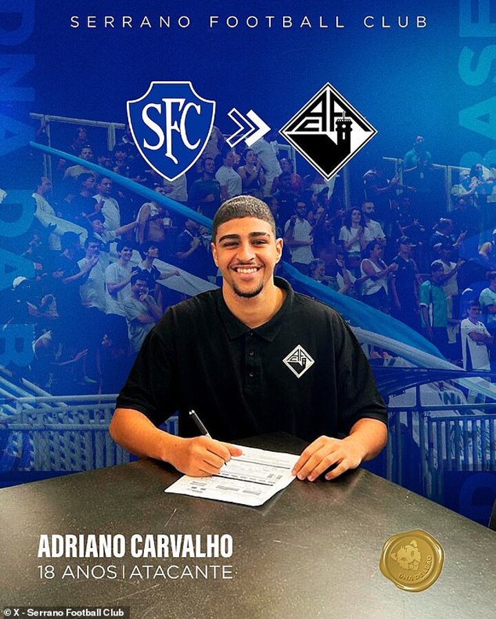'And today our lion Adrianinho says goodbye to Serrano,' they said. 'Taking flight to a new continent, we sealed a contract with the Academica de Coimbra team from Portugal (sic.).