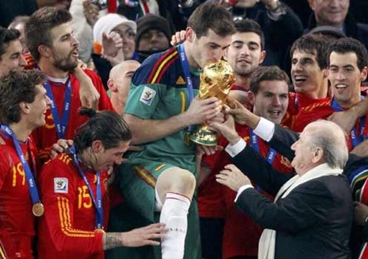 Casillas has played for the Spanish national team a record 167 times and has been an international since June 2000, making him the joint sixth-most capped male footballer in history, and the joint second-most capped European player of all time. He became the nation's first-choice goalkeeper at the 2002 FIFA World Cup and went on to play at UEFA Euro 2004 and the 2006 World Cup. In 2008, he was made captain and led the team to that year's European Championship. He also led Spain to their first World Cup in 2010, and retained the European Championship in 2012. In 2014, Casillas also became one of four players to represent Spain at four World Cups.