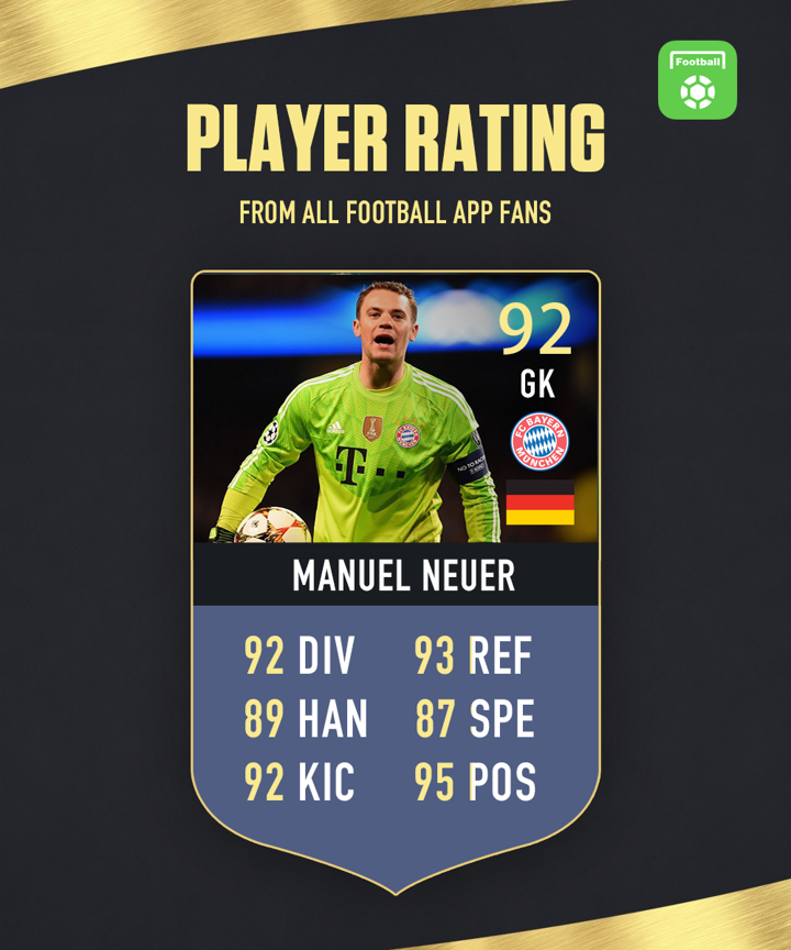 Hello everyone, welcome to - Daily Player Rating! You could be the judge and rate one player every day at 10:30 CET. The results will be declared in the form of Fut Card tomorrow. We released the rating of Manuel Neuer yesterday. The sweeper-keeper got 92 total points with highest 95 in positioning. The detailed results are as follows: