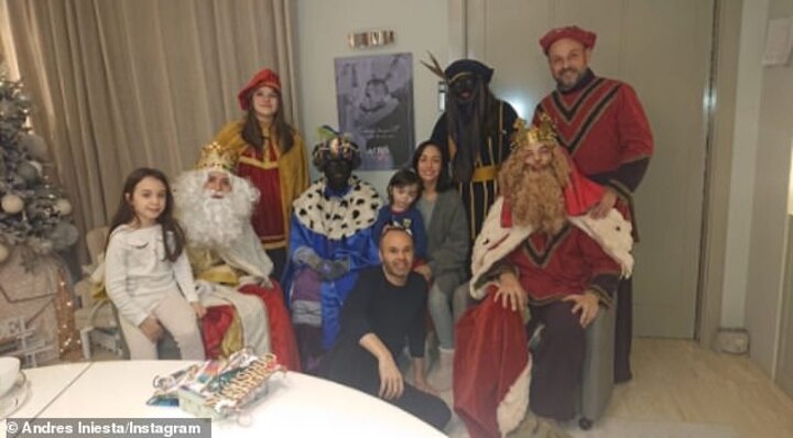 Iniesta had been celebrating Feliz dias de Reyes - a festive Christian tradition in Spain and many Latin American countries which commemorates the arrival of the three kings Balthazar, Melchior and Gaspar at the birth of Jesus - with his friends and family on Sunday.