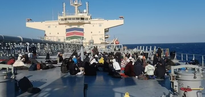 The crew raised the alarm, and with the native coastal guard launched a rescue mission to haul them to safety on the tanker.