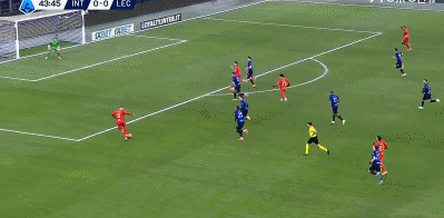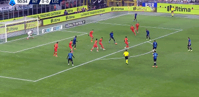 The home side kept pressing for the breakthrough, as another change from the weekend draw with Napoli, Henrikh Mkhitaryan, took aim from the edge of the box following a corner, but his effort sailed a whisker wide. Another Inter corner in added time saw Marcus Thuram’s tame header easily dealt with by Falcone, who then launched the ball downfield for Riccardo Sottil to chase, and his effort on the half-volley dropping just wide was both the last action before HT and Lecce’s only first-half opportunity.