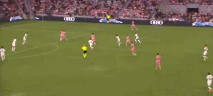 Austin had already hit the post by that point, via Myrto Uzuni's free-kick, and the high-octane start continued as Messi scored his team's first goal at their new home, nodding Ian Fray's deflected cross into the roof of the net in the 10th minute.