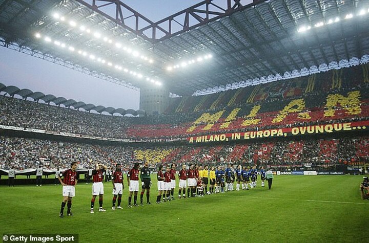 The second leg the following week saw the red, white and black banners of Milan replaced by the blue and back of Inter in the majority of the stadium.