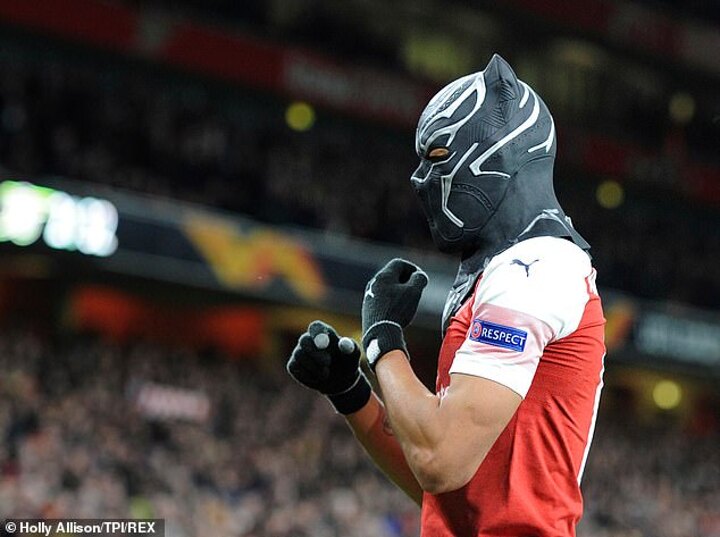 After scoring the Gunners' crucial third goal, Gabon striker Aubamenyang wore a mask from iconic movie Black Panther as he took acclaim from his team-mates and supporters during a tense night at the Emirates Stadium.