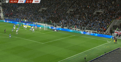 56' GOAL! Wonderful kick from Tonali breaks the deadlock! Italy 1-0 Northern Ireland