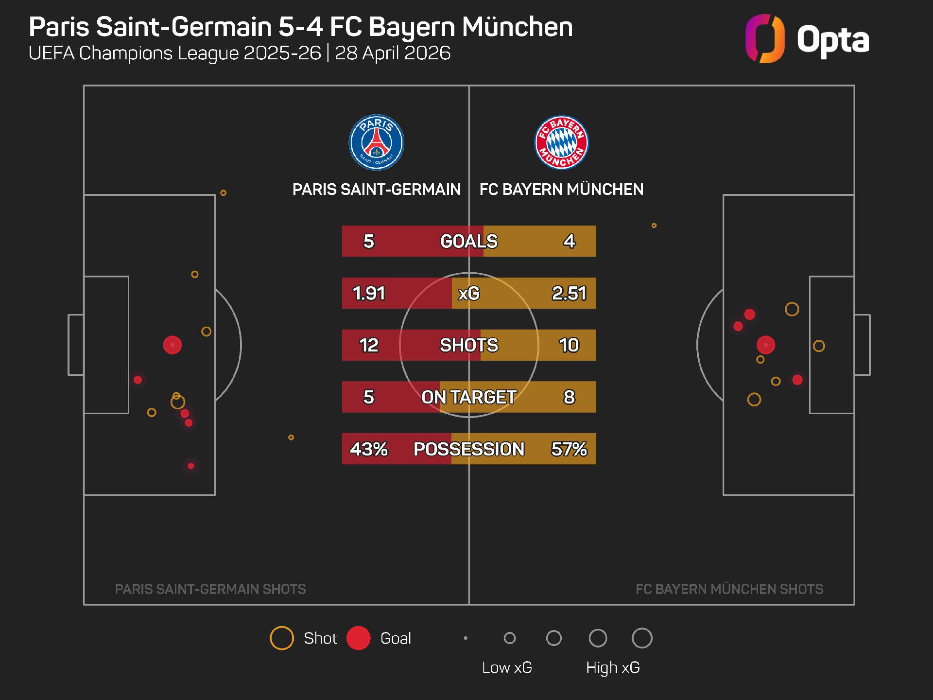 It was the first time that both teams had scored four goals in a semi-final in any European competition, and just the second time it had occurred in a Champions League knockout-stage match, after Chelsea 4-4 Liverpool in the 2008-09 quarter-finals.