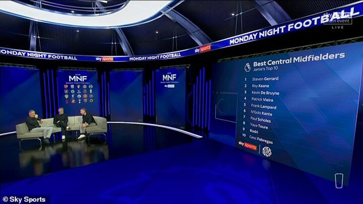 Attention then turned to Keane, with the Irishman ranked in second place, although he looked a little awkward when his fellow pundit lavished praise on him.