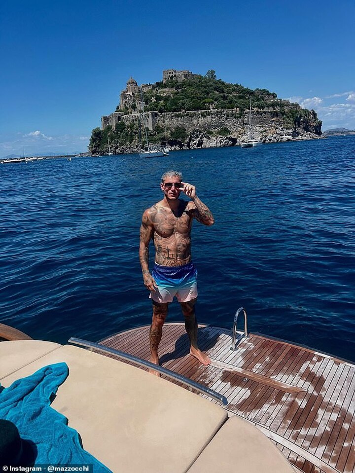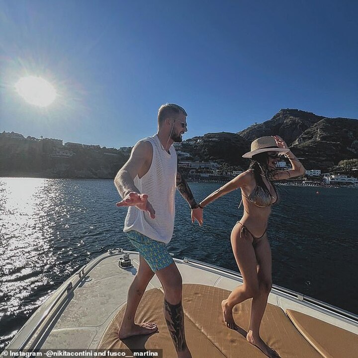 Substitute goalkeeper Nikita Contini shared intimate snaps soaking up the sun with his partner Martina Fusco as they took a boat trip out to Ischia one summer.