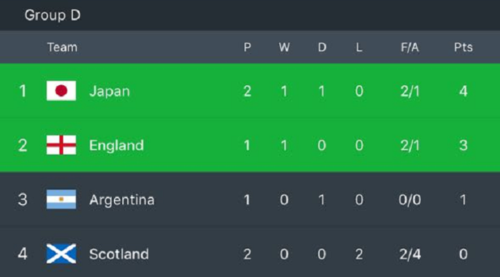 This defeat leaves Scotland bottom of the group, knowing they need to beat Argentina to have a chance of making the knockout stages as one of the four best third-placed sides.