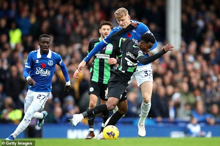 Everton could not see out the match to claim a valuable three points on Saturday but they limited a talented Brighton side to few chances and were only undone by a cruel deflected own goal when Ashley Young diverted in Kaoru Mitoma’s attempted cross.