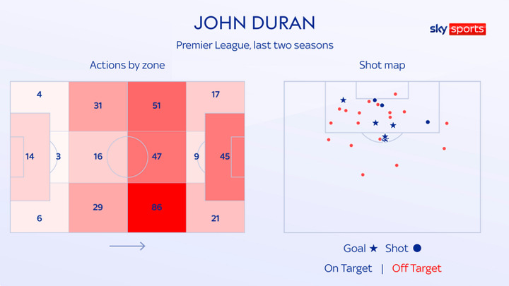 But 18 months on, there is still a sense that he has not shown the true extent of his potential. So far, Duran has played just 590 Premier League minutes, the vast majority of his appearances coming from the bench as Watkins' deputy.
