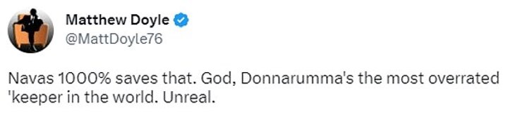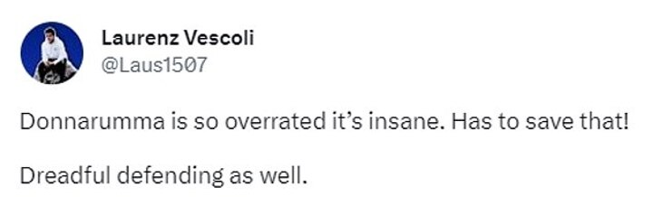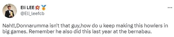 While some blamed the defenders, the majority went for Donnarumma, with many labelling him 'overrated' and suggesting it's not the first time he has made 'howlers' in the UCL.
