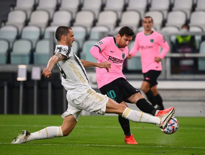 Barca came tearing out the gate with three chances in the first two minutes. Leo Messi’s effort was charged down by Bonucci, then on the corner Wojciech Szczesny parried a Miralem Pjanic strike and Antoine Griezmann’s follow-up thumped the inside of the post.