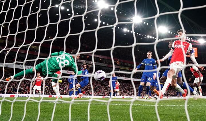 Havertz, who scored Chelsea’s winner in the 2021 Champions League final, was superbly released by Odegaard and held off Cucurella to lift the ball over Petrovic, sparking wild scenes in the stands followed by taunts aimed at the away end.