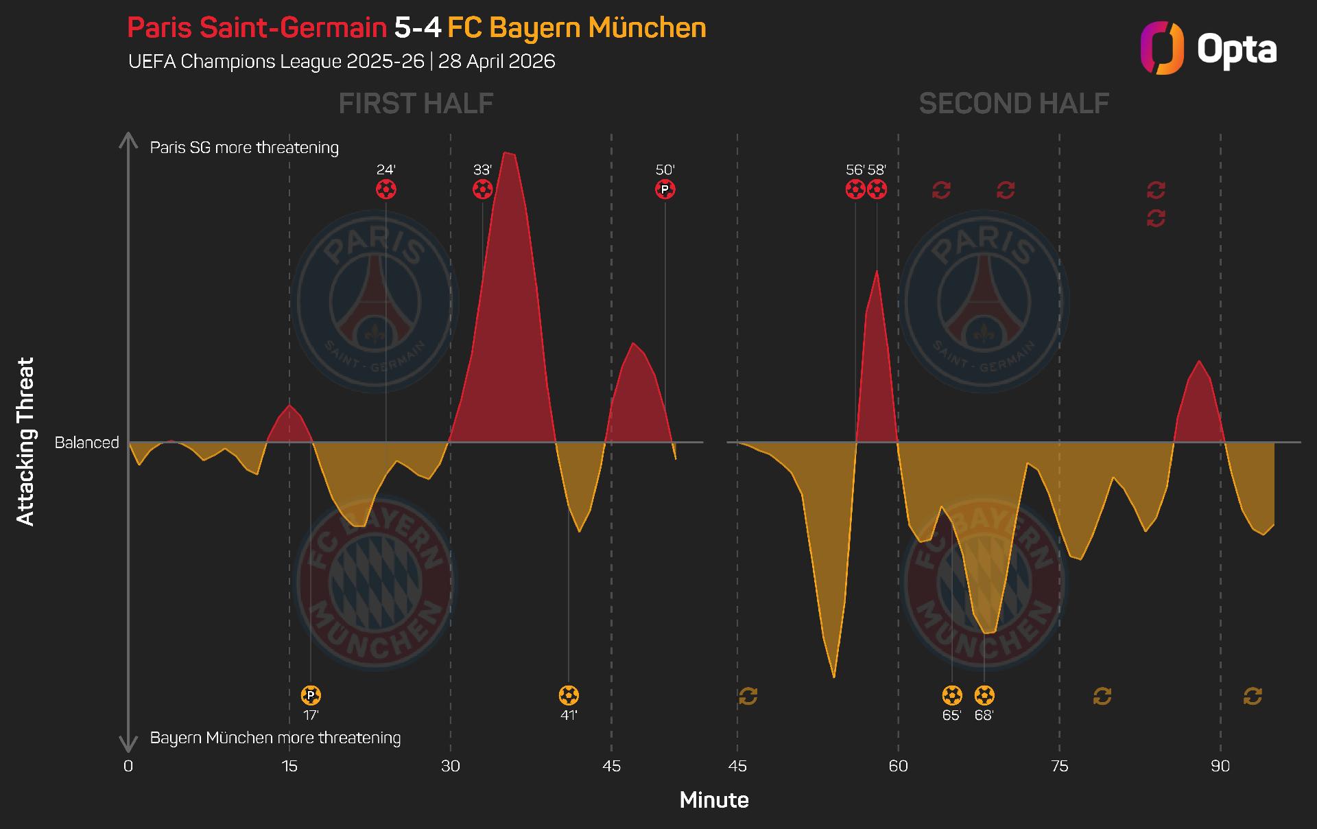 Tuesday's game was the joint highest-scoring semi-final match in European Cup or Champions League history, along with Eintracht Frankfurt's 6-3 win over Rangers in 1959-60.