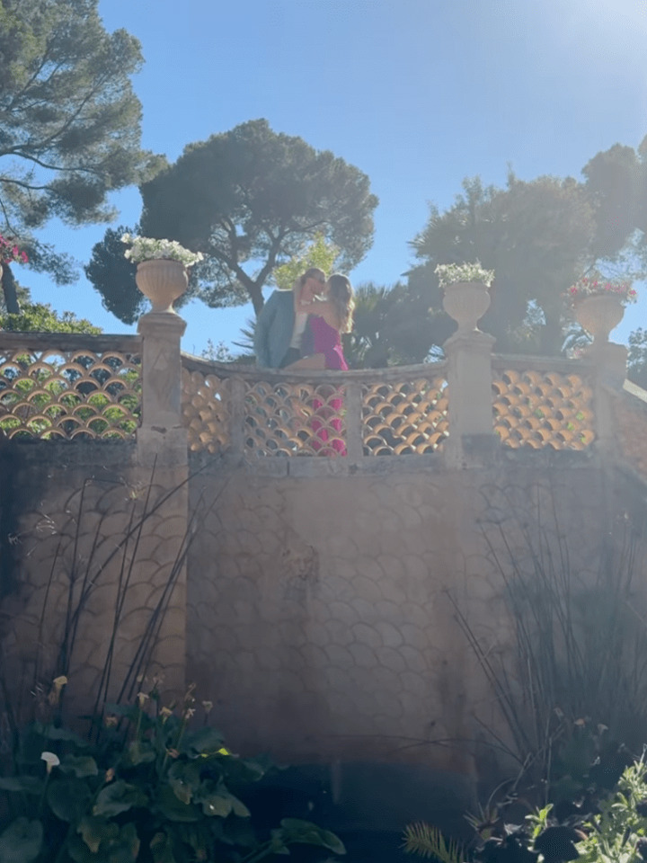 The couple appeared loved-up as they shared a kiss in one snap while standing in the sunlight.