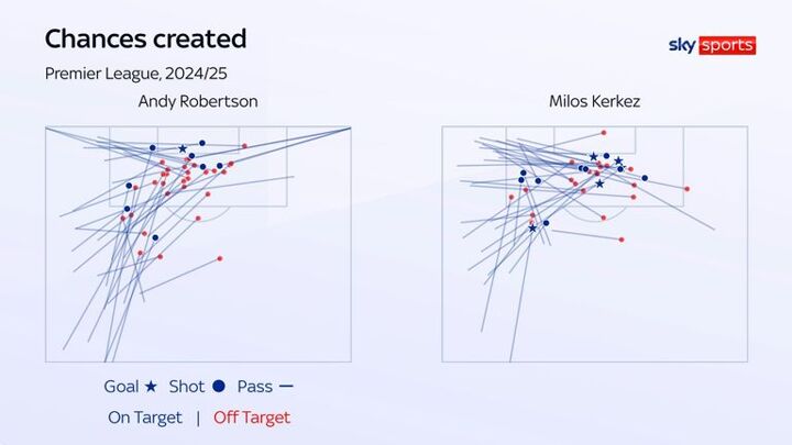 According to Opta, only 12 Premier League players progressed the ball further through carries than Kerkez last season. It is worth noting that his average carry progress of 87.4m per 90 minutes was significantly higher than Robertson's at 76.1m per 90 minutes.